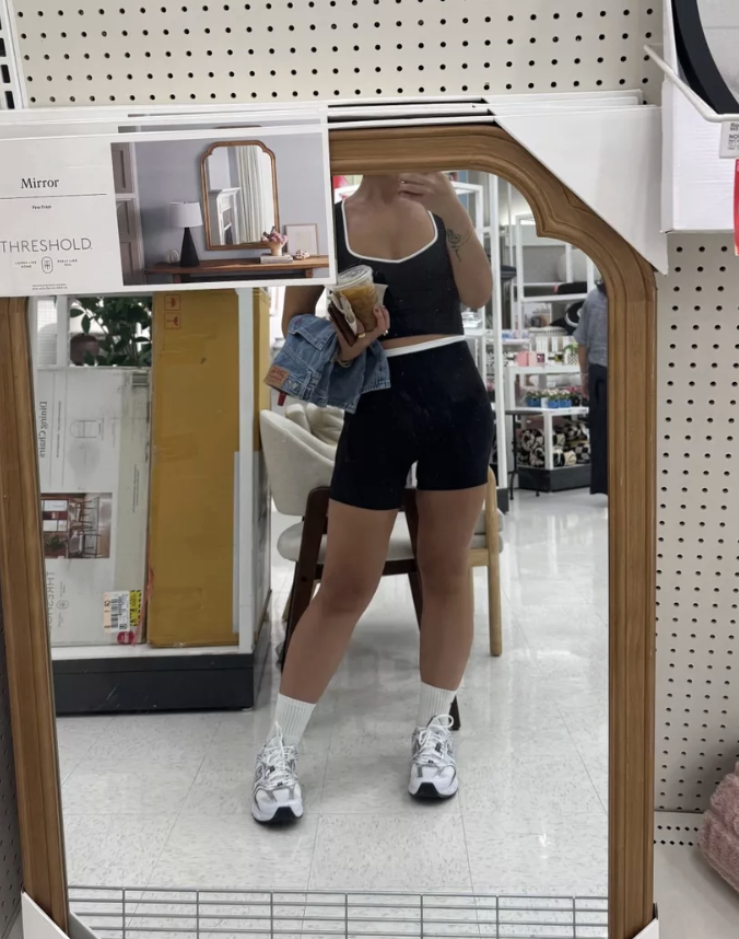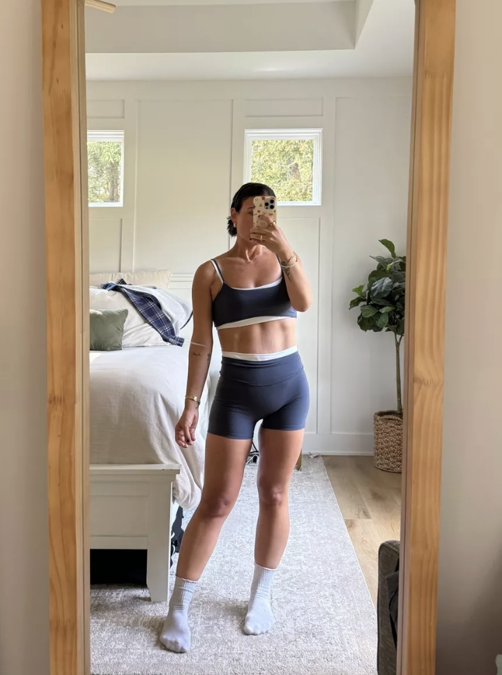 if you’re on a budget but still want quality activewear, target’s all in motion line is where it’s at. this set is so affordable, but it doesn’t feel cheap at all. the strappy sports bra is cute and supportive (and those back straps? so flattering), and the ultra high rise bike shorts stay put and smooth everything out. i love that i can grab this set on a target run without breaking the bank. it’s proof that you don’t need to spend a fortune to look and feel good during your workout.