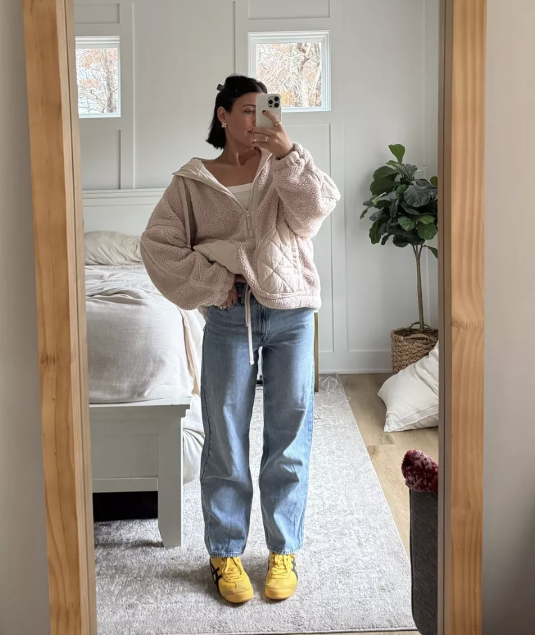 okay, so if you’re feeling a little daring and want to lean into the low-rise trend, these aritzia jeans are where it’s at. the ’90s vintage lo-rise baggy tapered jean is giving major throwback energy with a relaxed, baggy fit through the leg that tapers slightly at the ankle. the vintage wash is chef’s kiss—it’s that perfect worn-in denim look that feels effortlessly cool. i style these with cropped sweaters or fitted long-sleeve tops to balance out the low rise, and they’re amazing with chunky sneakers or combat boots for that edgy, street-style vibe.