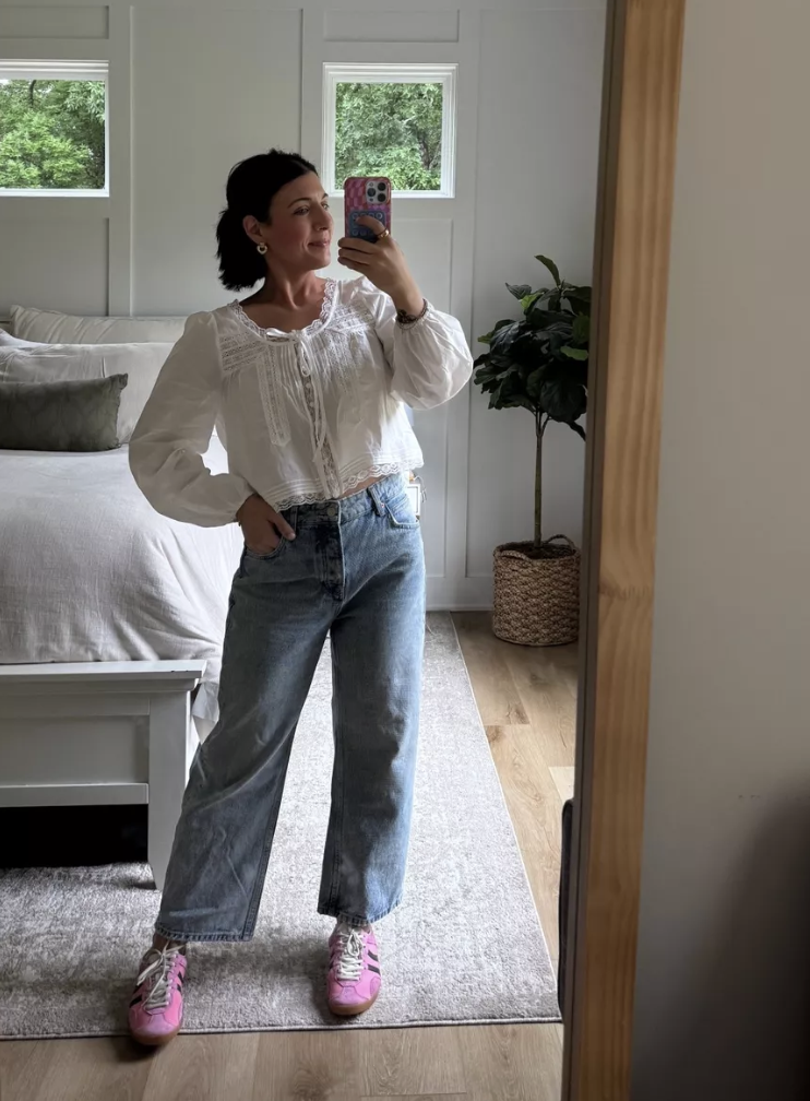 if you know me, you know i’m a levi’s girlie through and through. their baggy dad jeans are everything i want in a relaxed-fit jean—classic, timeless, and so ridiculously comfortable. these sit high on the waist with that slouchy, broken-in feel that makes them look like you’ve owned them for years. the silhouette is wide through the leg with a straight cut, giving you that cool, borrowed-from-your-dad aesthetic that works with literally everything.