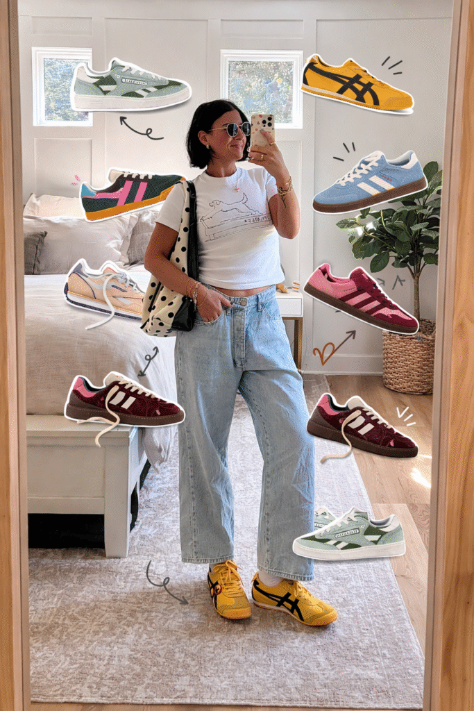 okay, if there’s one thing you should know about me by now, it’s that i am a sneaker girl through and through. like, give me a good shoe and i am instantly a better person. but here’s the thing, i don’t just reach for the safe, basic white sneaker (although, respect). i am all about a bold colored sneaker that makes an outfit pop, and i love mixing those in with my neutrals to keep things interesting. whether i’m shuffling the boys to school, running errands, or throwing together a cute casual look, sneakers are always the answer. so today i’m rounding up my absolute favorite sneakers for spring and summer because your feet deserve to have fun too.
