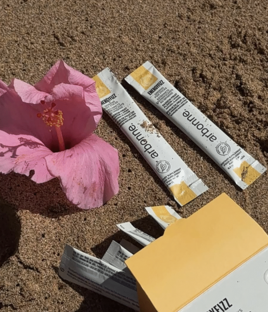okay let’s talk about something i get asked about constantly. because if you’ve ever seen me on stories reaching for something that isn’t my starbies, you’ve probably wondered what’s in that little cup. and the answer is the arbonne energyfizz ginseng fizz sticks, and they have completely changed the way i think about energy and have become my favorite substitue for coffee.