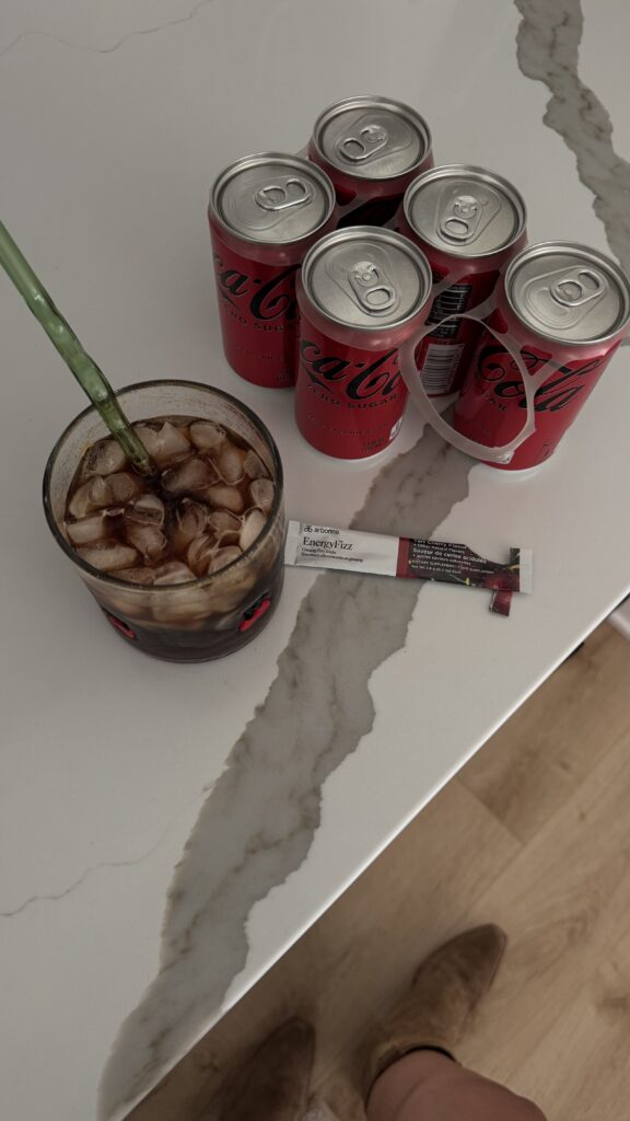 and okay, i have to share my favorite little treat recipe because it’s too good to keep to myself. one of my absolute favorite ways to enjoy a fizz stick is to mix one into a coca cola. i know, i know, hear me out. the flavor combinations are so good, and it turns into this fizzy, flavorful drink that feels like such an indulgence. pomegranate and blood orange are my top picks for this one. it’s the kind of thing that makes you feel like you’re treating yourself while still getting the good stuff in.